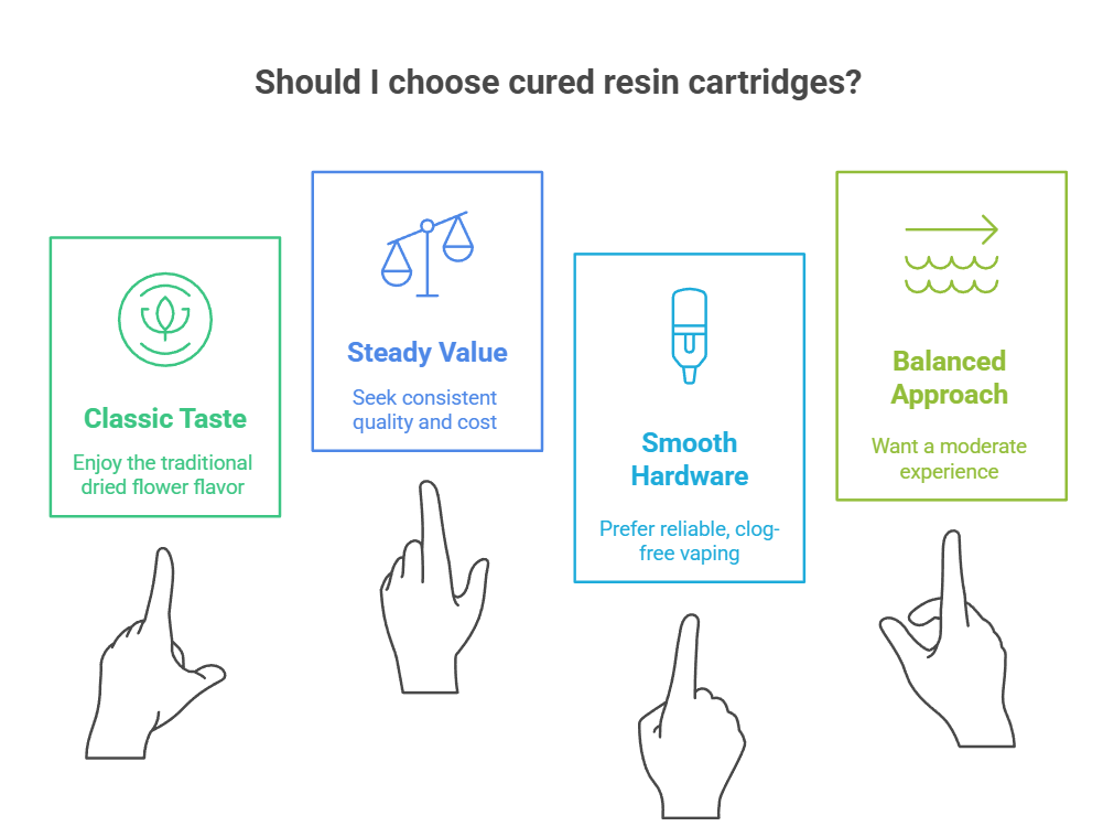 It also suits people who want smooth hardware behavior. Nothing ruins a session like a clog. If you want stable temperature behavior, cured resin carts provide a quiet solution.